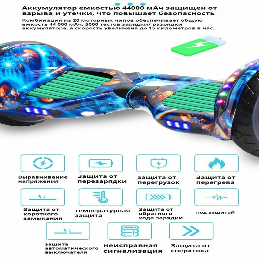 Гироскутер, Диаметр: 10 дюймов, Звездно-фиолетовый, Защита от опрокидывания, Со светодиодной подсветкой интересное: