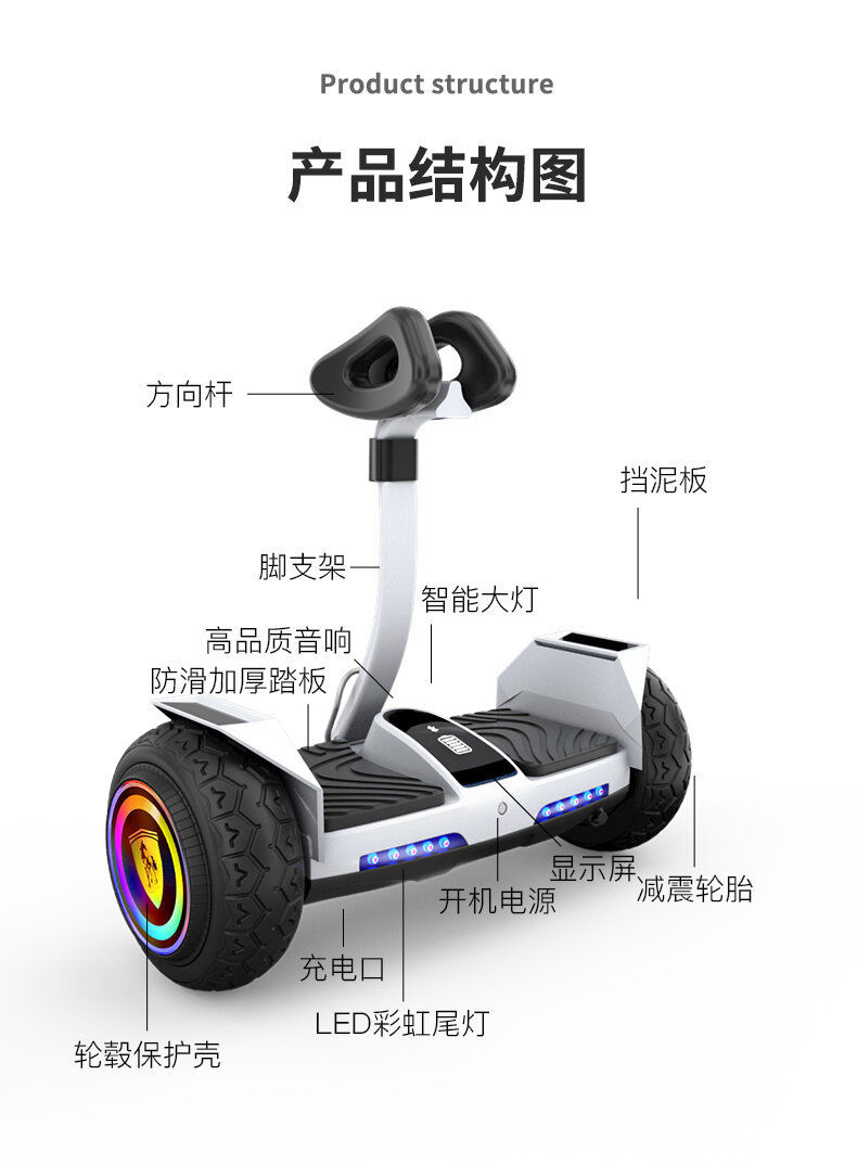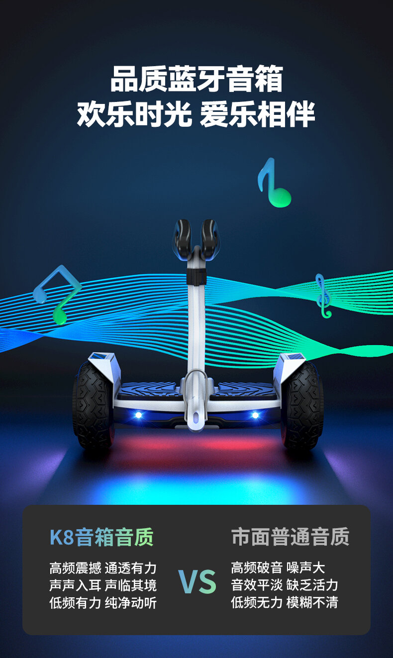 8-дюймовый самобалансирующийся скутер с тройным управлением и светящимися колесами, белый интересное: