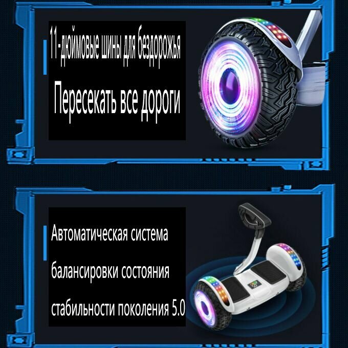 Гироскутер, Диаметр: 11 дюймов, С аудиосистемой Bluetooth, внедорожными колесами интересное: