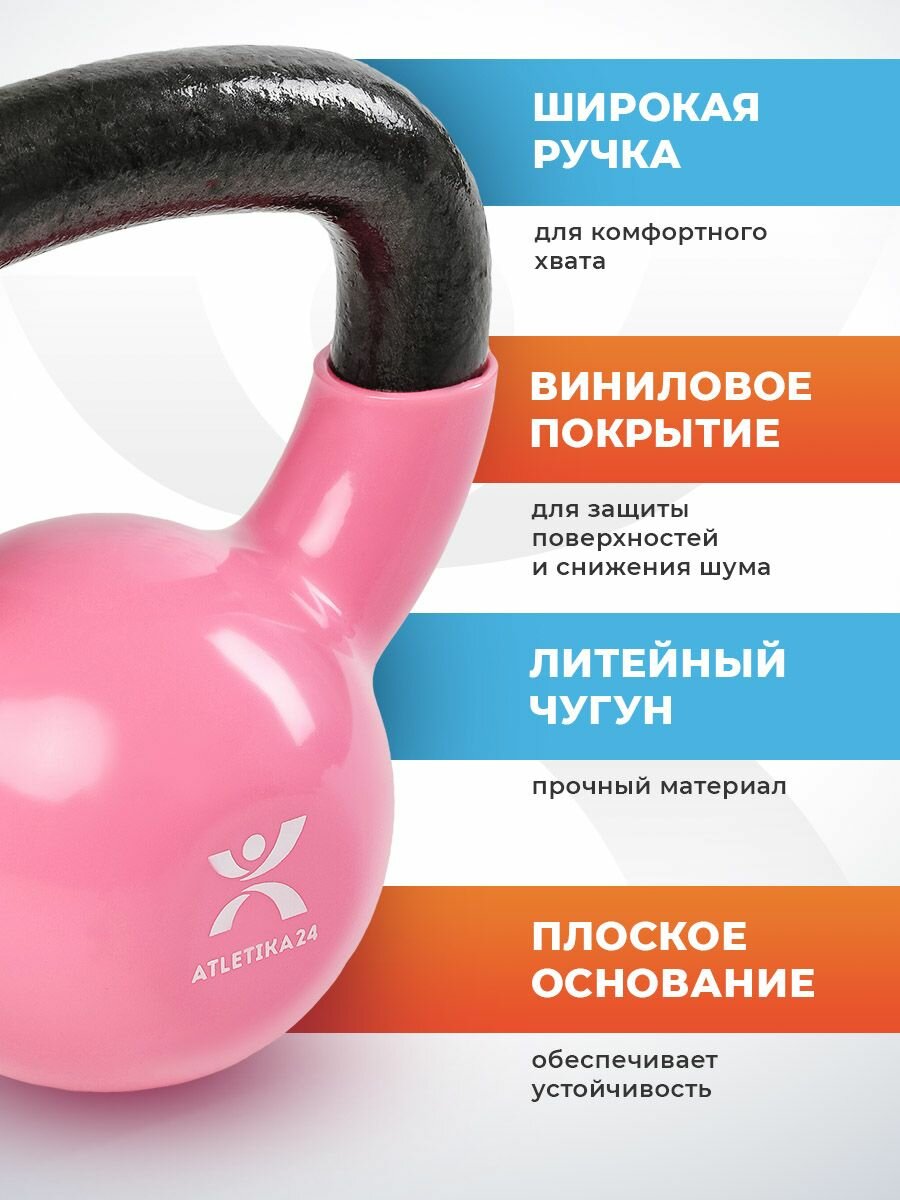 Гиря 4 кг чугунная с виниловым покрытием для фитнеса и спорта, розовая, обрезиненная интересное: