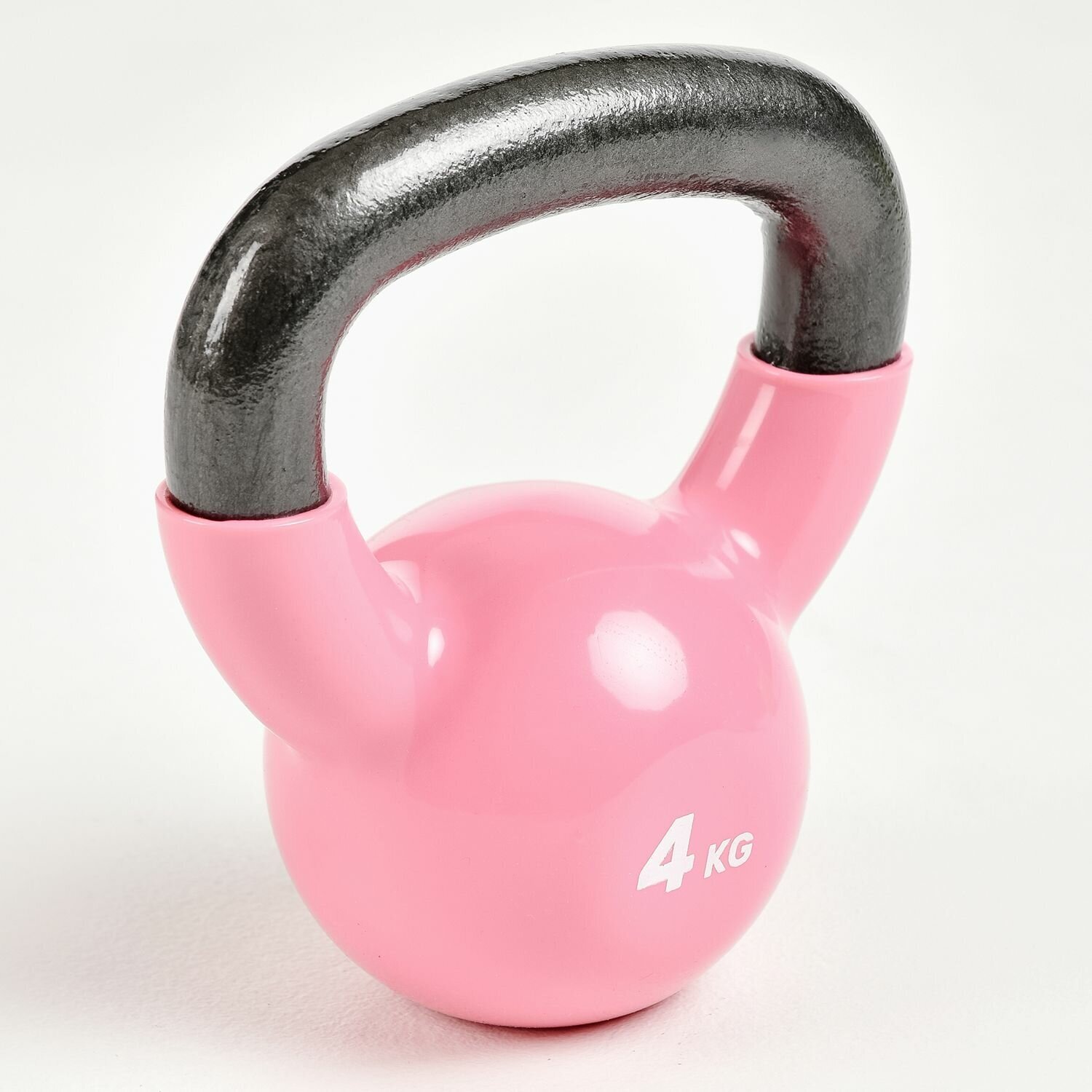 Купить Гиря 4 кг чугунная с виниловым покрытием для фитнеса и спорта, розовая, обрезиненная