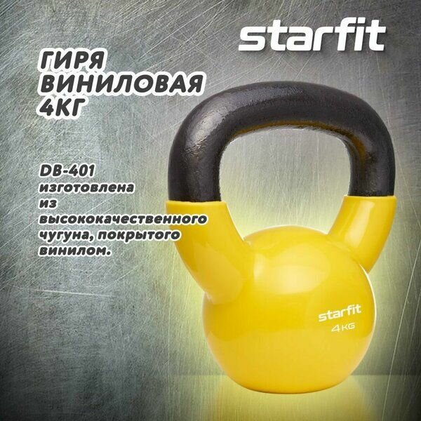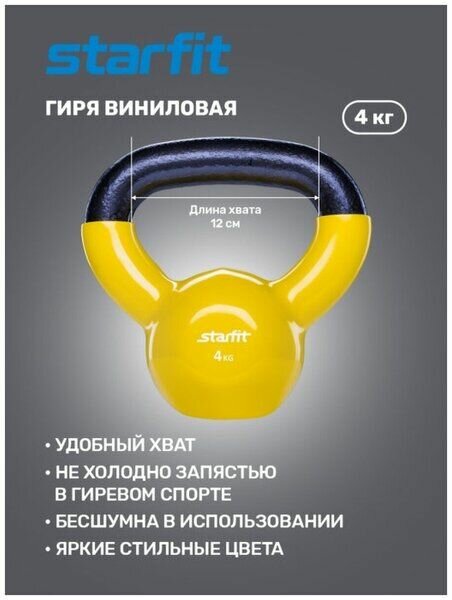 Гиря 4 кг, желтая, виниловая Starfit DB-401 интересное:
