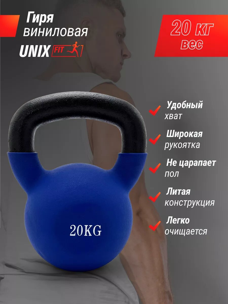 Купить Гиря виниловая UNIX Fit Blue, обрезиненная мужская, для фитнеса и кроссфита, 20 кг, 1 шт.