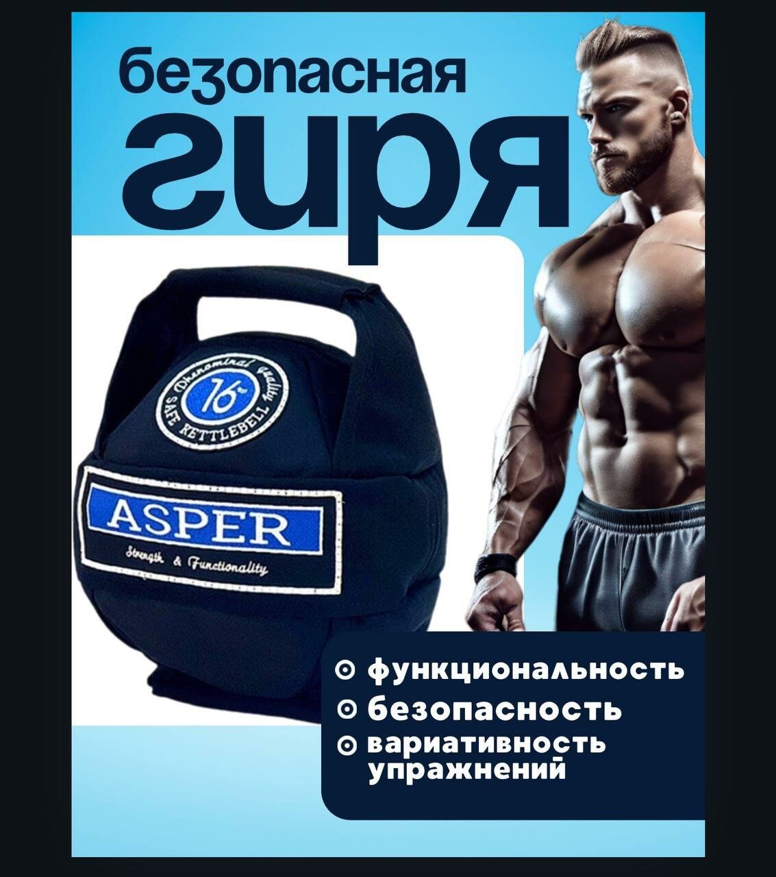 Купить Гиря засыпная ASPER 16 кг, безопасная, наполнитель металлические шарики, спорт инвентарь, текстильная с двумя ручками
