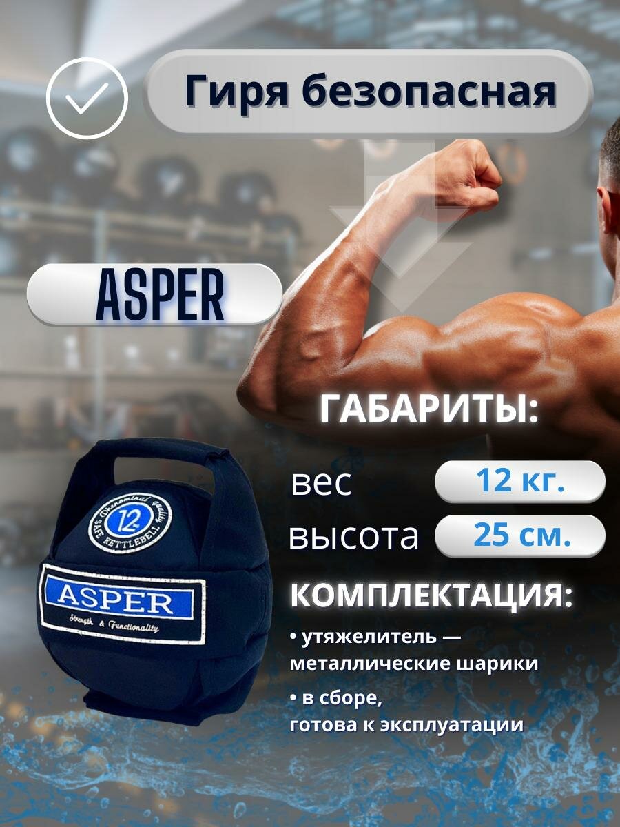 Купить Гиря засыпная ASPER 12 кг, безопасная, наполнитель металлические шарики, спорт инвентарь, текстильная с двумя ручками