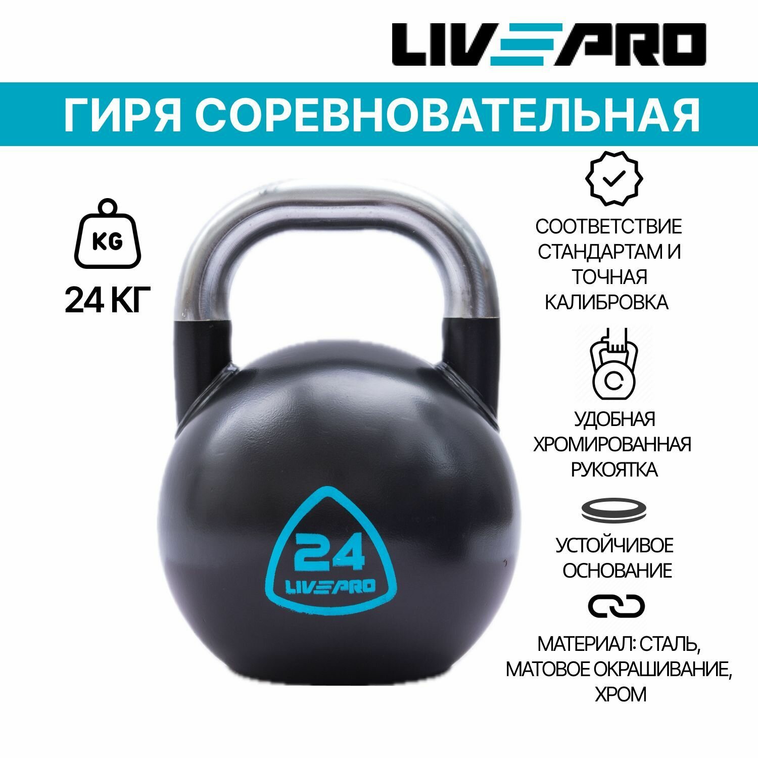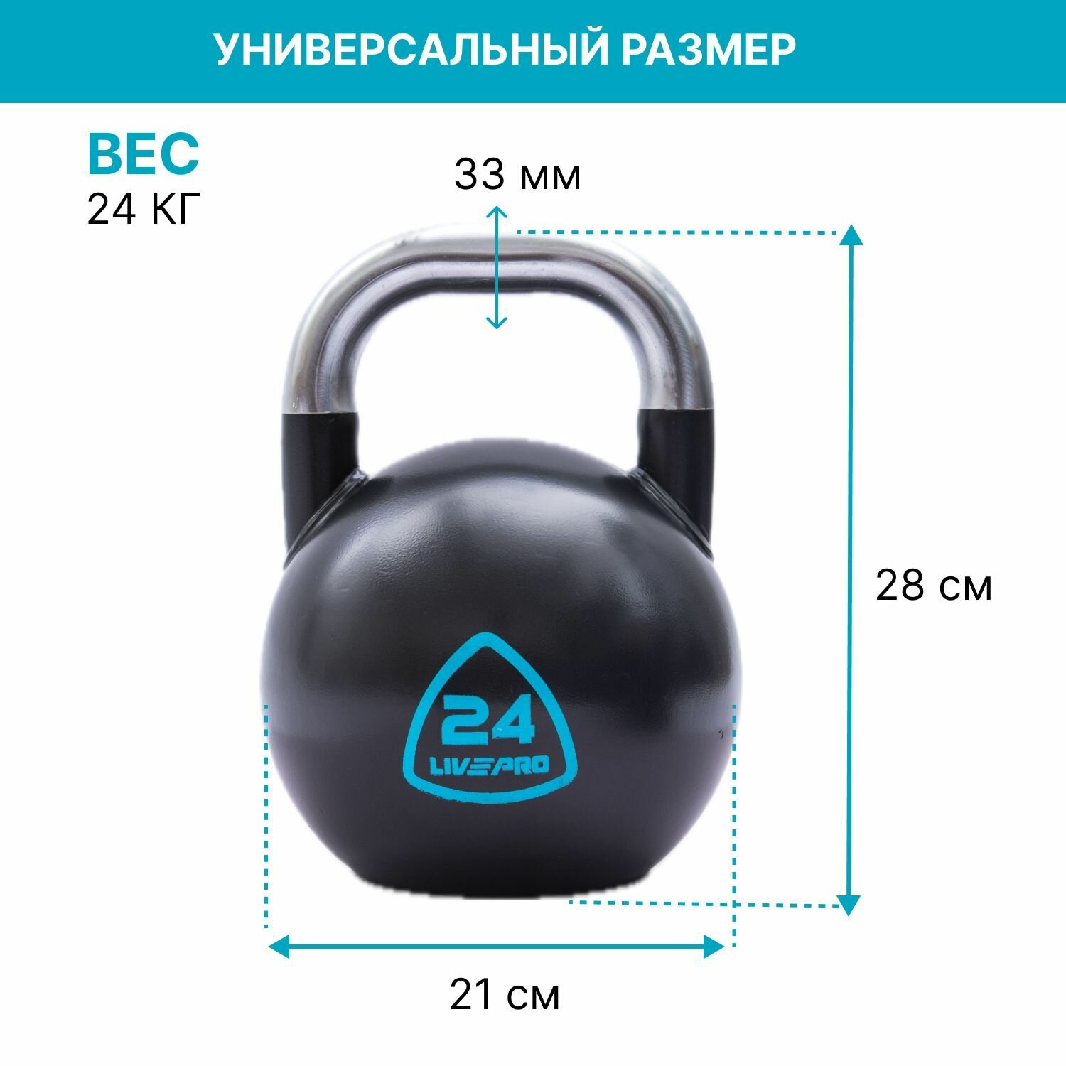 Гиря 24 кг стальная соревновательная LIVEPRO с калибровкой, стандартный размер интересное: