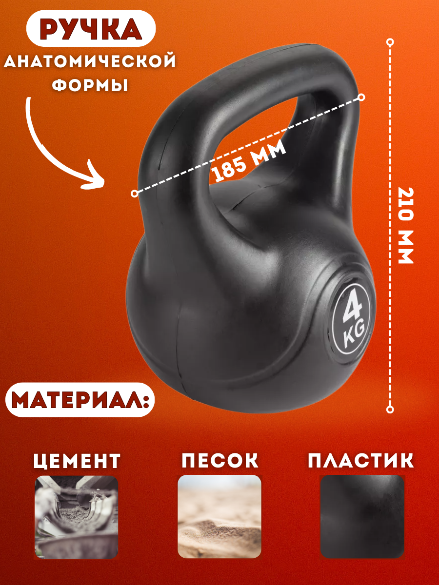 Гиря пластиковая 4 кг Черная интересное: