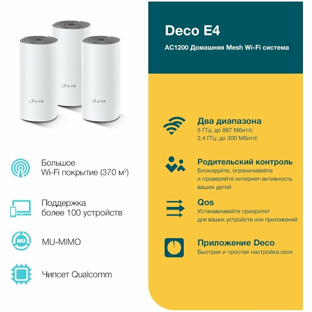 Бесшовный Mesh роутер TP-LINK Deco E4, AC1200, 3 шт. в комплекте [deco e4(3-pack)]