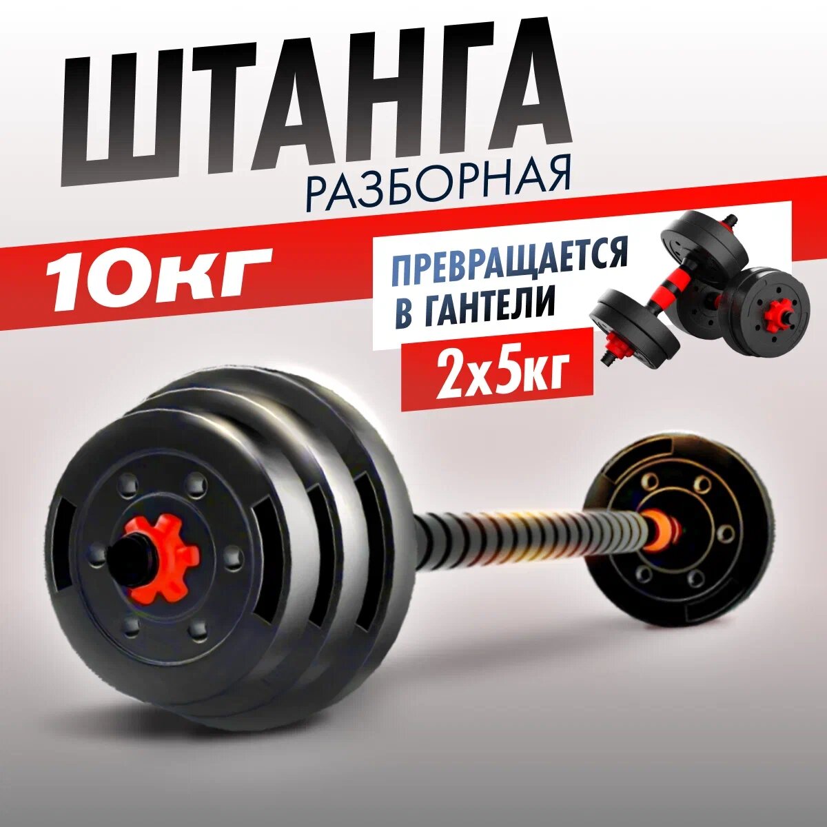 Штанга разборная для фитнеса титан 10 кг . Трансформер 2 гантели разборные по 5 кг интересное: