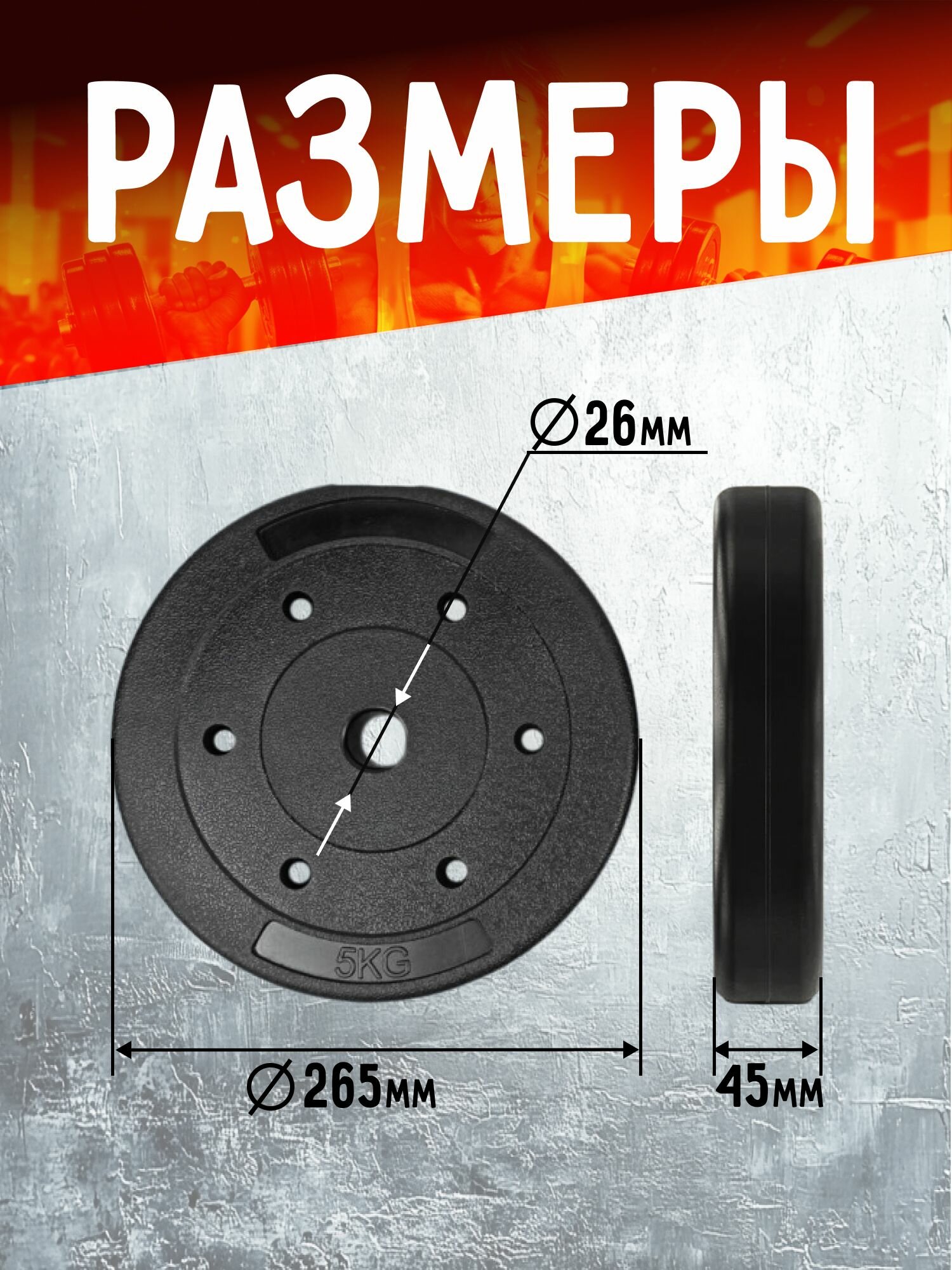 Диск 5 кг 2 штуки, пластик, композит, d 26, для грифа и штанги