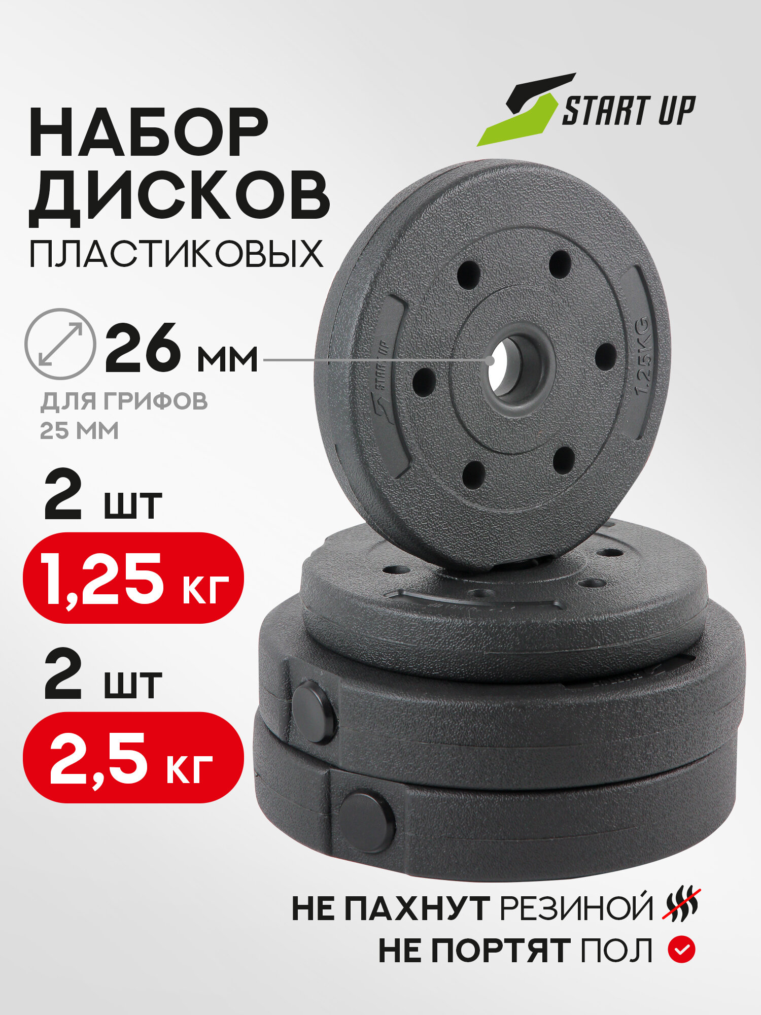 Набор 4 пластиковых дисков для грифов Start Up ECE 074 1,25 кг и 2,5 кг по 2 шт Ø26 мм интересное: