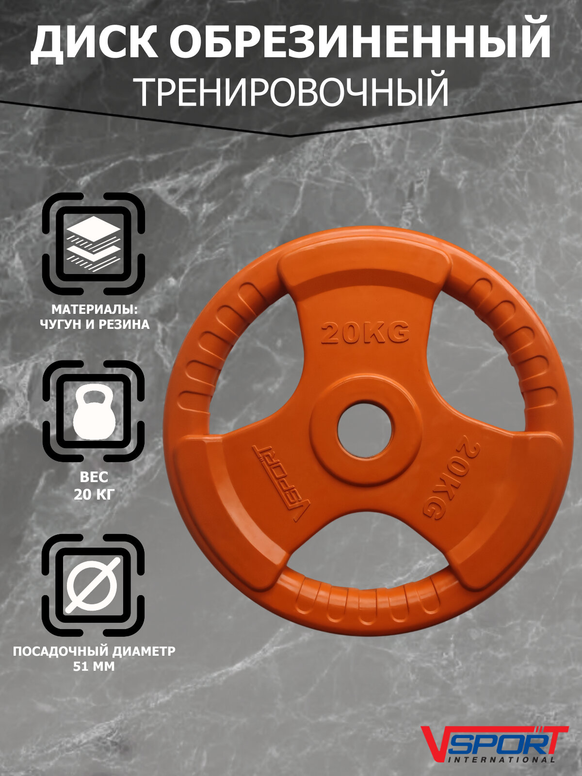 СохранитьДиск для штанги тренировочный 20 кг, обрезиненный, цветной с ручкой LC-20 интересное: