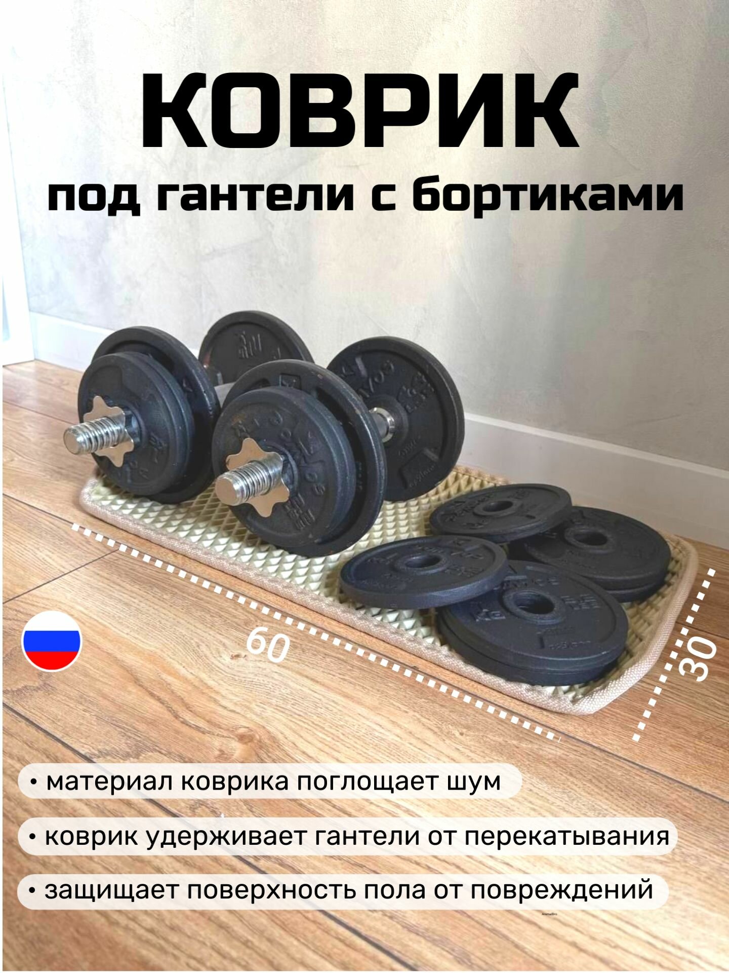 Коврик под гантели под блины с бортиками, 30х60, бежевый, Россия интересное: