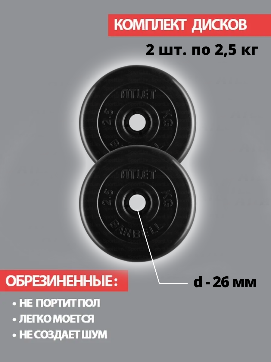 Набор дисков MB Barbell Atlet 2.5 кг 2 шт. черный интересное: