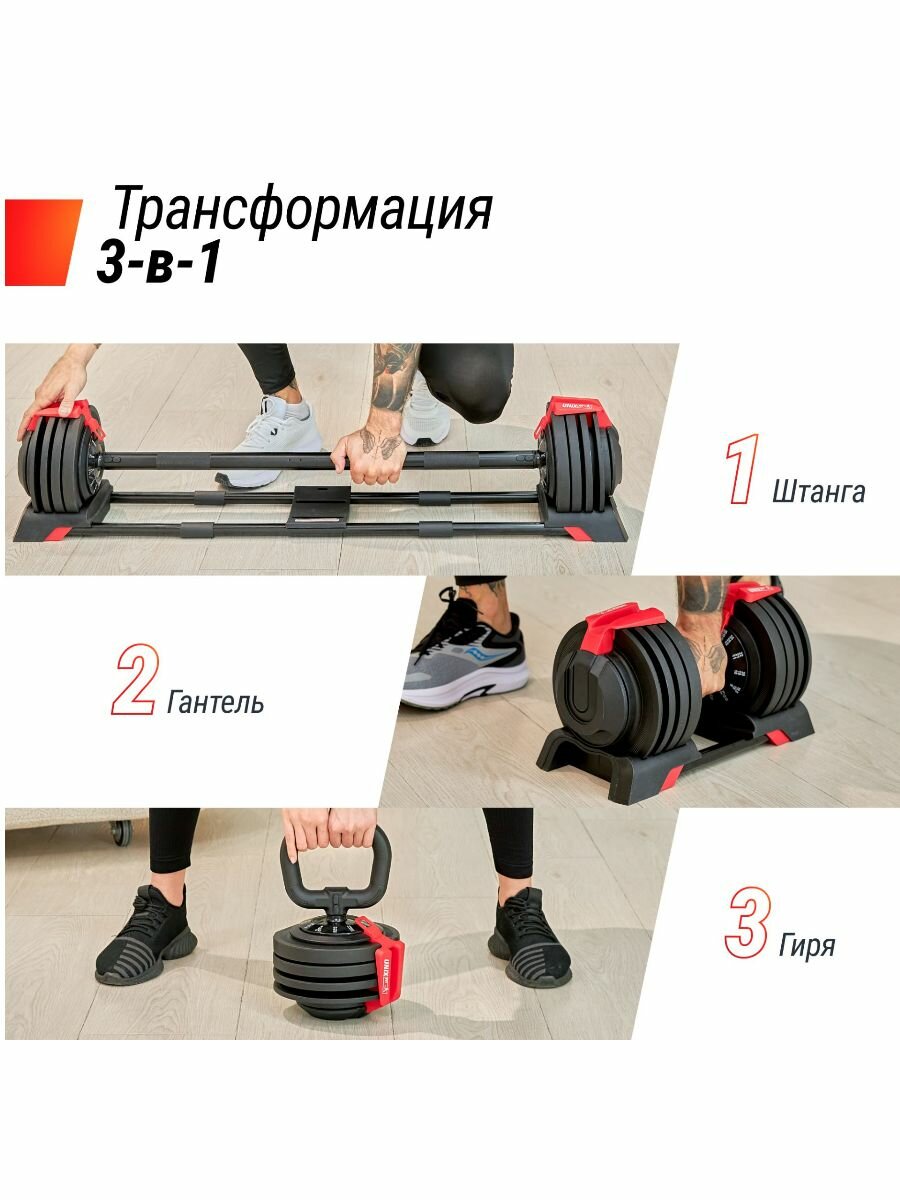 Штанга UNIX Fit "3 в 1", многофункциональная, регулируемая, разборная, 24кг, чёрная/красная интересное: