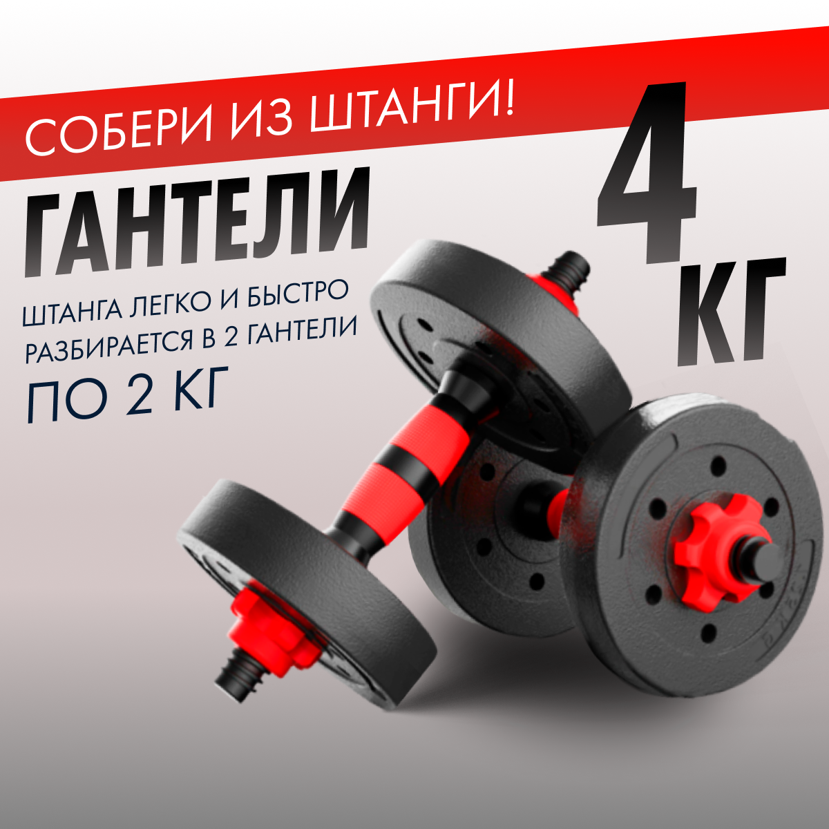 Штанга разборная для фитнеса титан 4 кг . Трансформер 2 гантели разборные по 2кг интересное: