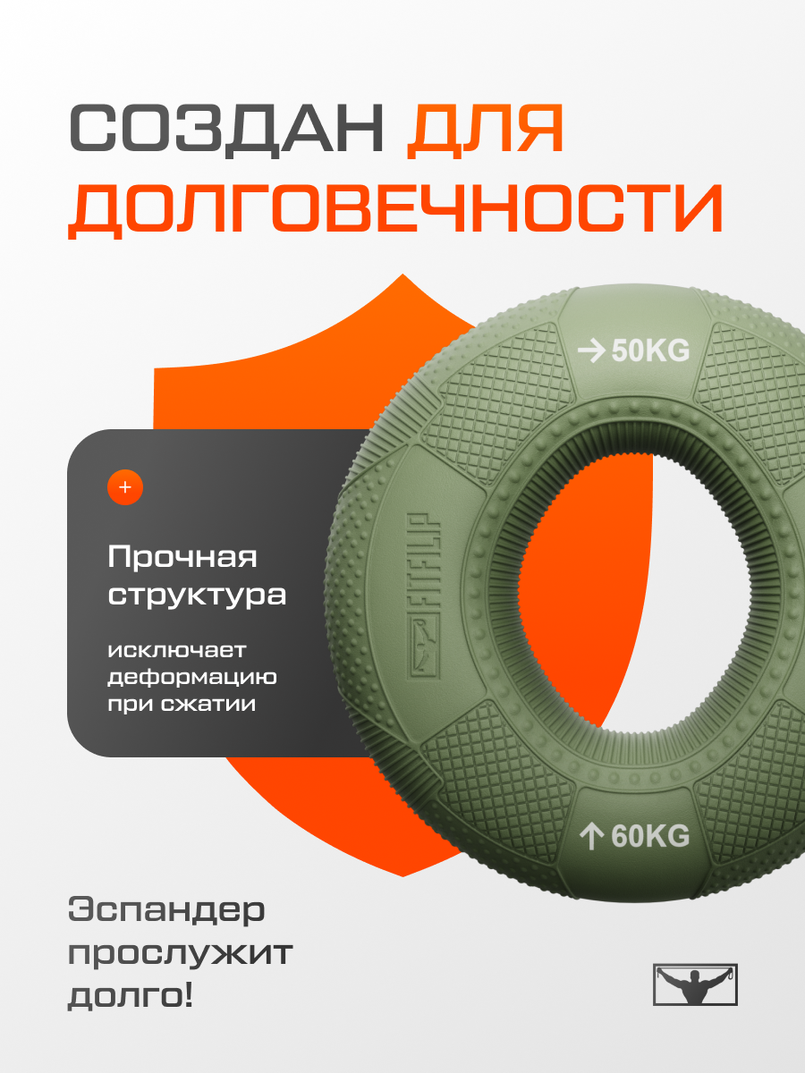 Кистевой эспандер FITFILIP , нагрузка 50 кг - 60 кг, длина 9 см интересное: