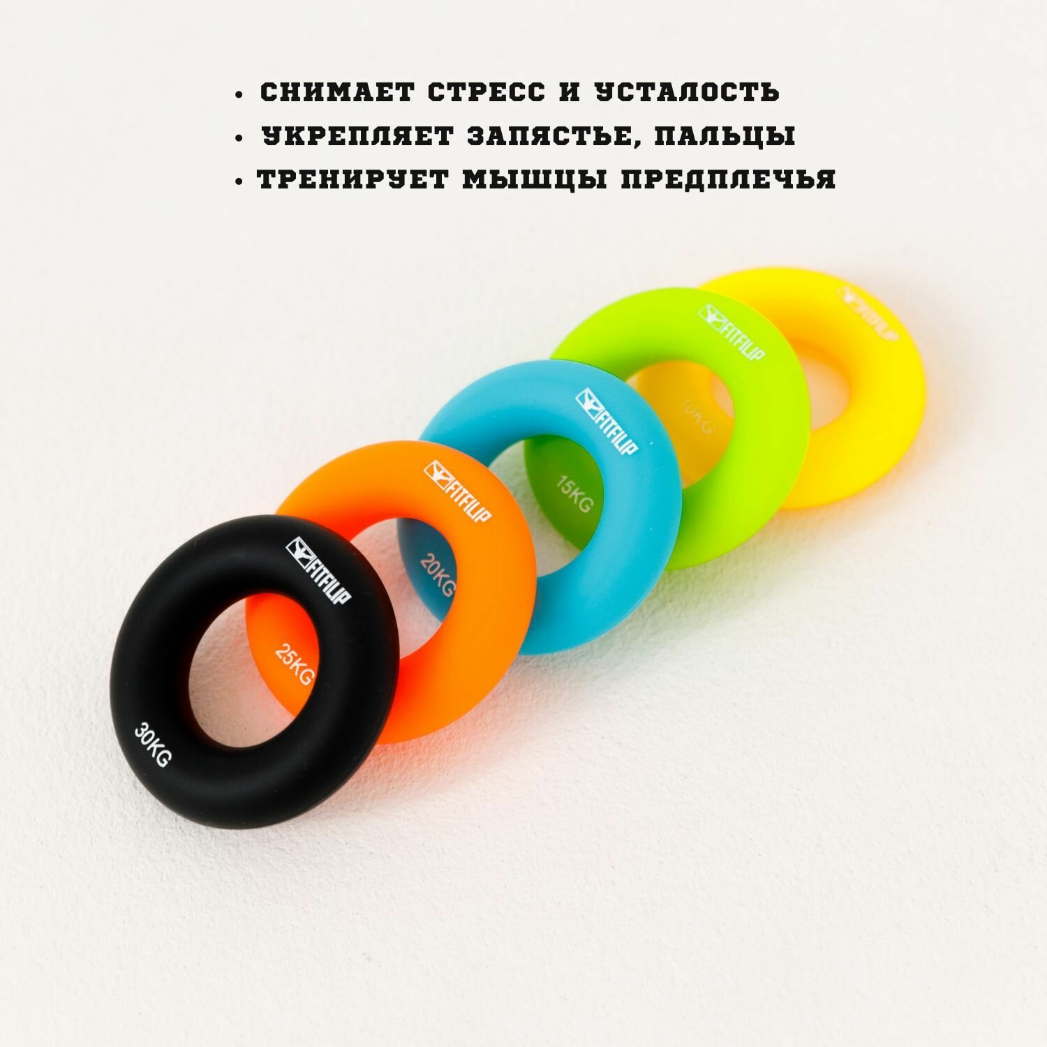 Эспандер FITFILIP кистевой силиконовый круглый для рук кольцо 30 кг интересное: