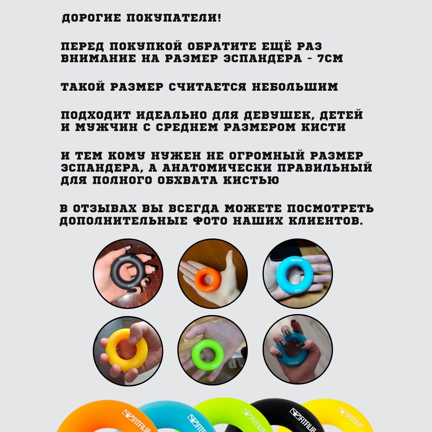 Ниже Вы можете прочитать отзывы на Эспандер FITFILIP кистевой силиконовый круглый для рук кольцо 30 кг, ознакомится с подробными характеристиками, посмотреть интересные обзоры и фотографии на Эспандер FITFILIP кистевой силиконовый круглый для рук кольцо 30 кг.