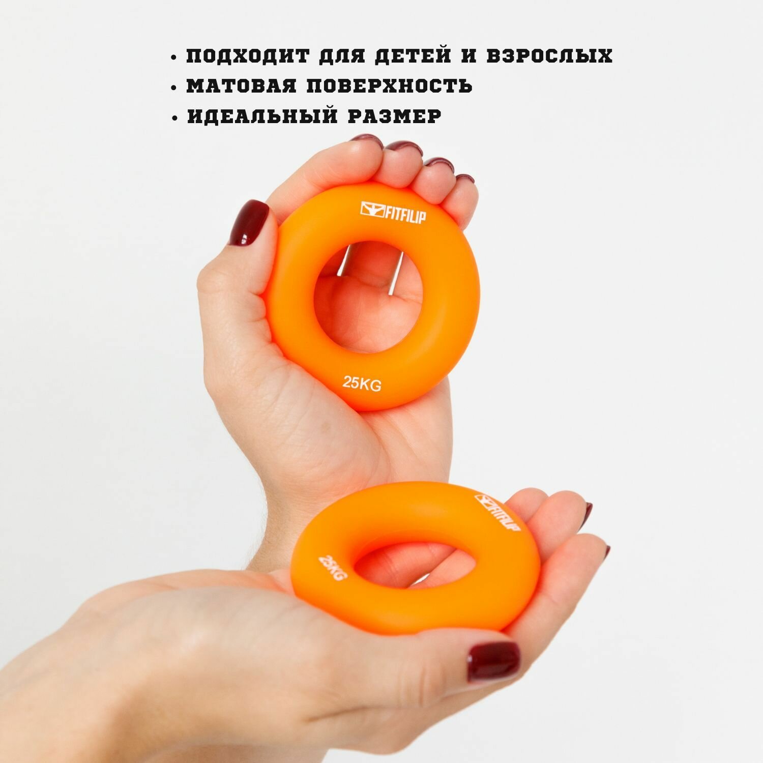 Эспандер FITFILIP кистевой силиконовый круглый для рук кольцо 25 кг интересное: