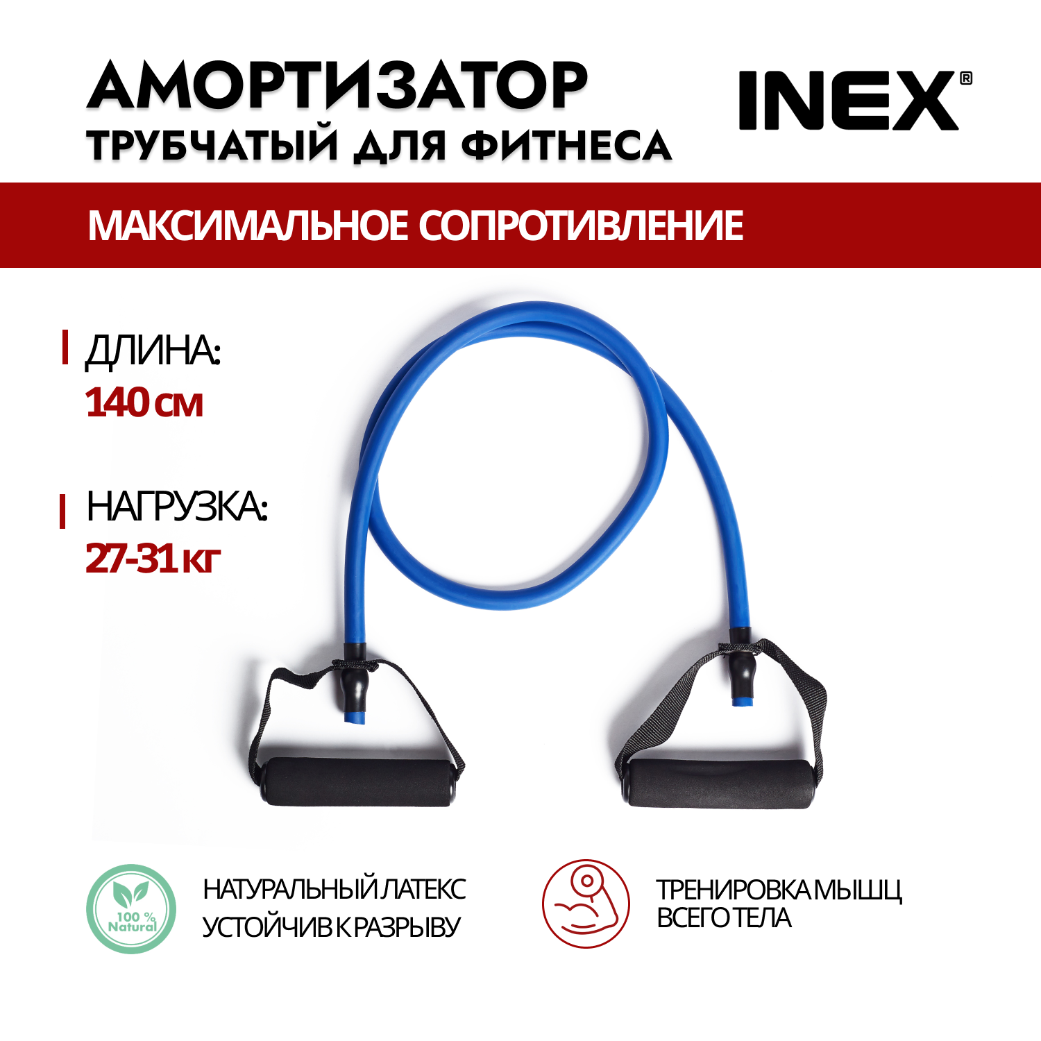 Эспандер трубчатый с ручками / Амортизатор для фитнеса INEX Body-Tube, 140 см, максимальное сопротивление, синий интересное: