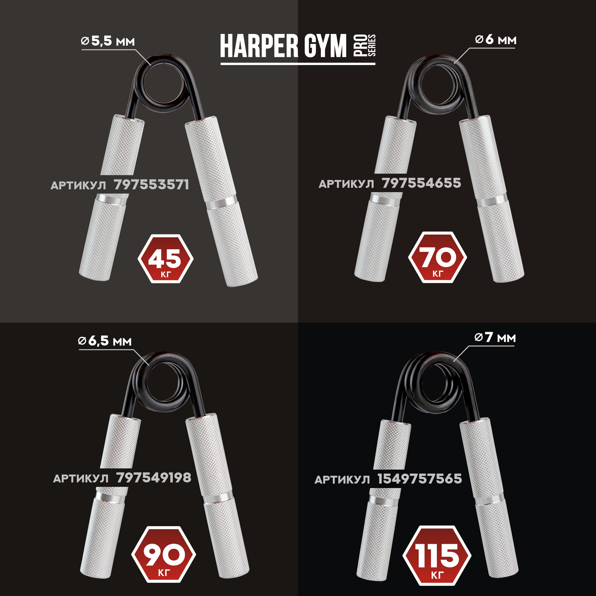 Эспандер кистевой Harper Gym Pro Series NT916 (шт) нагрузка 115 кг (250LB)
