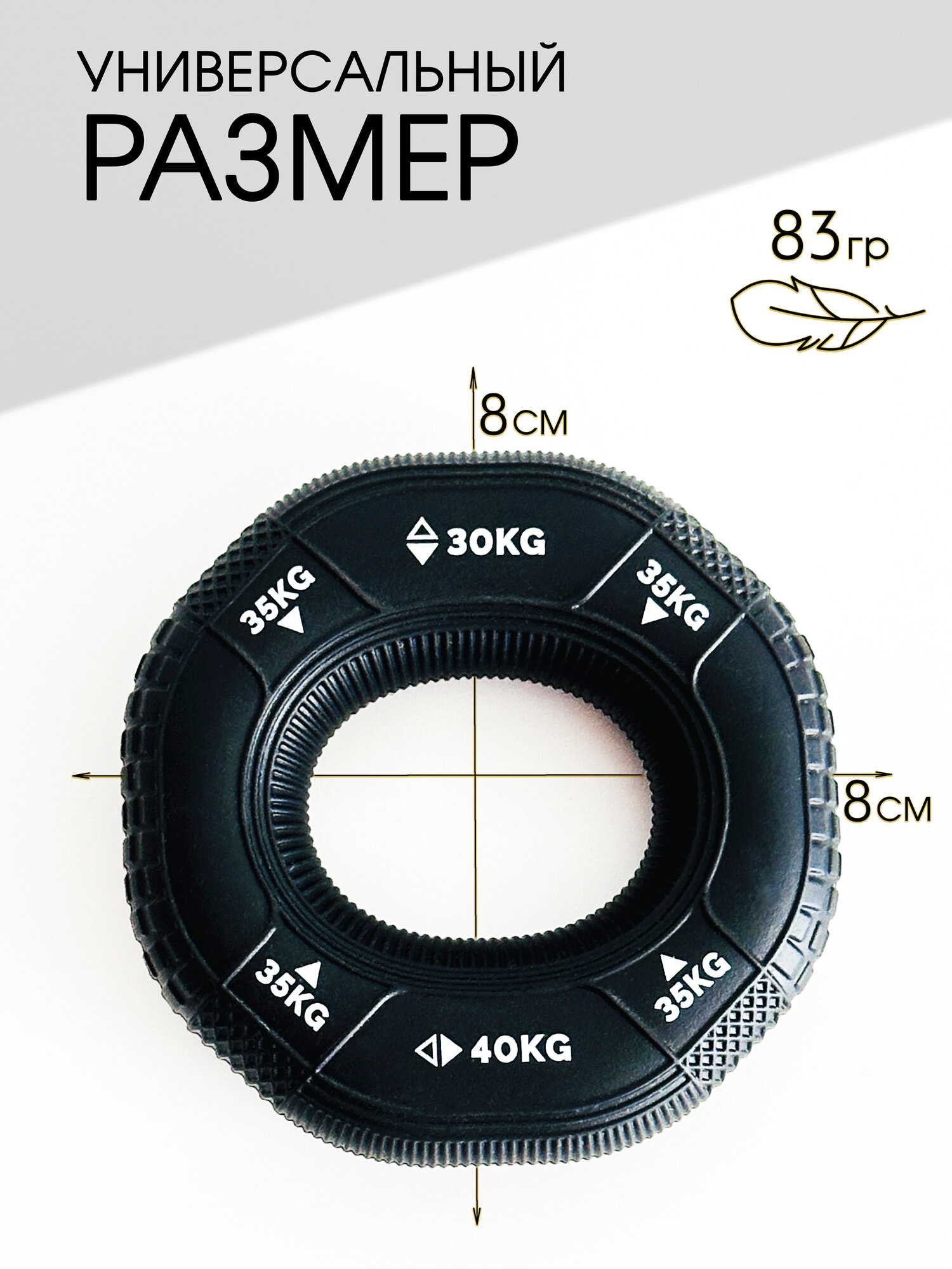 Эспандер кистевой для пальцев рук круглый 3в1 (30кг/35кг/40кг) + КЕЙС, кольцо, черный интересное: