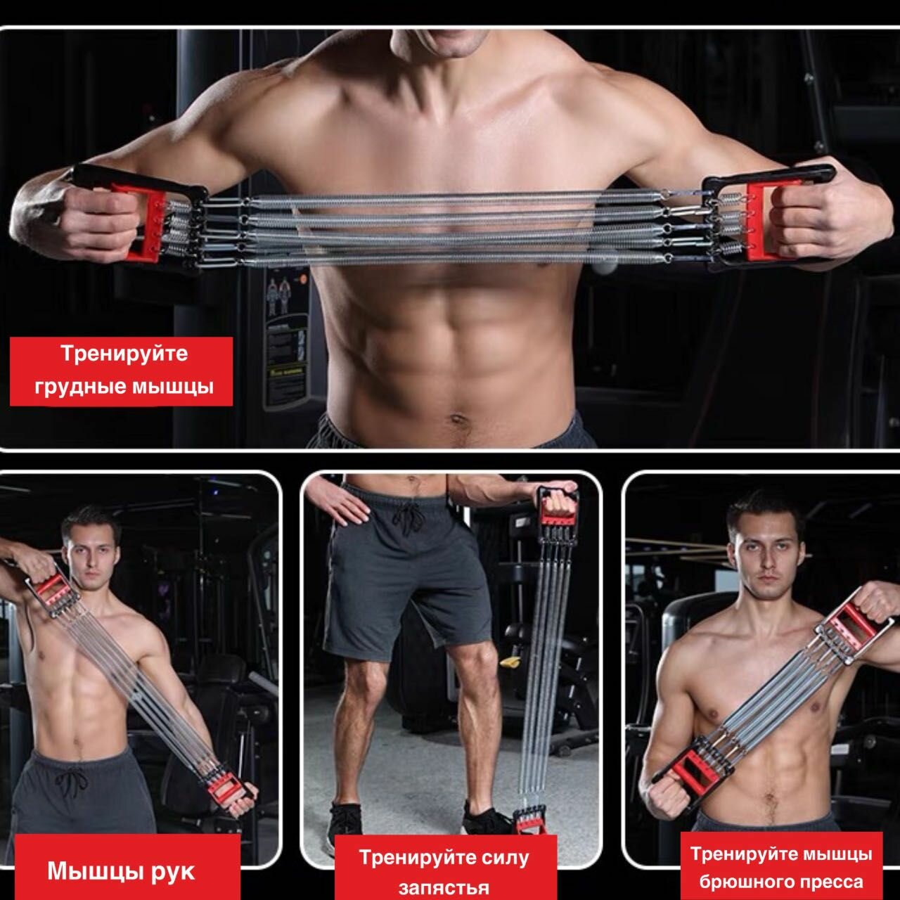 Эспандер пружинный 3 в 1 плечевой, грудной / Эспандер тренажёр универсальный кистевой 5 пружин интересное: