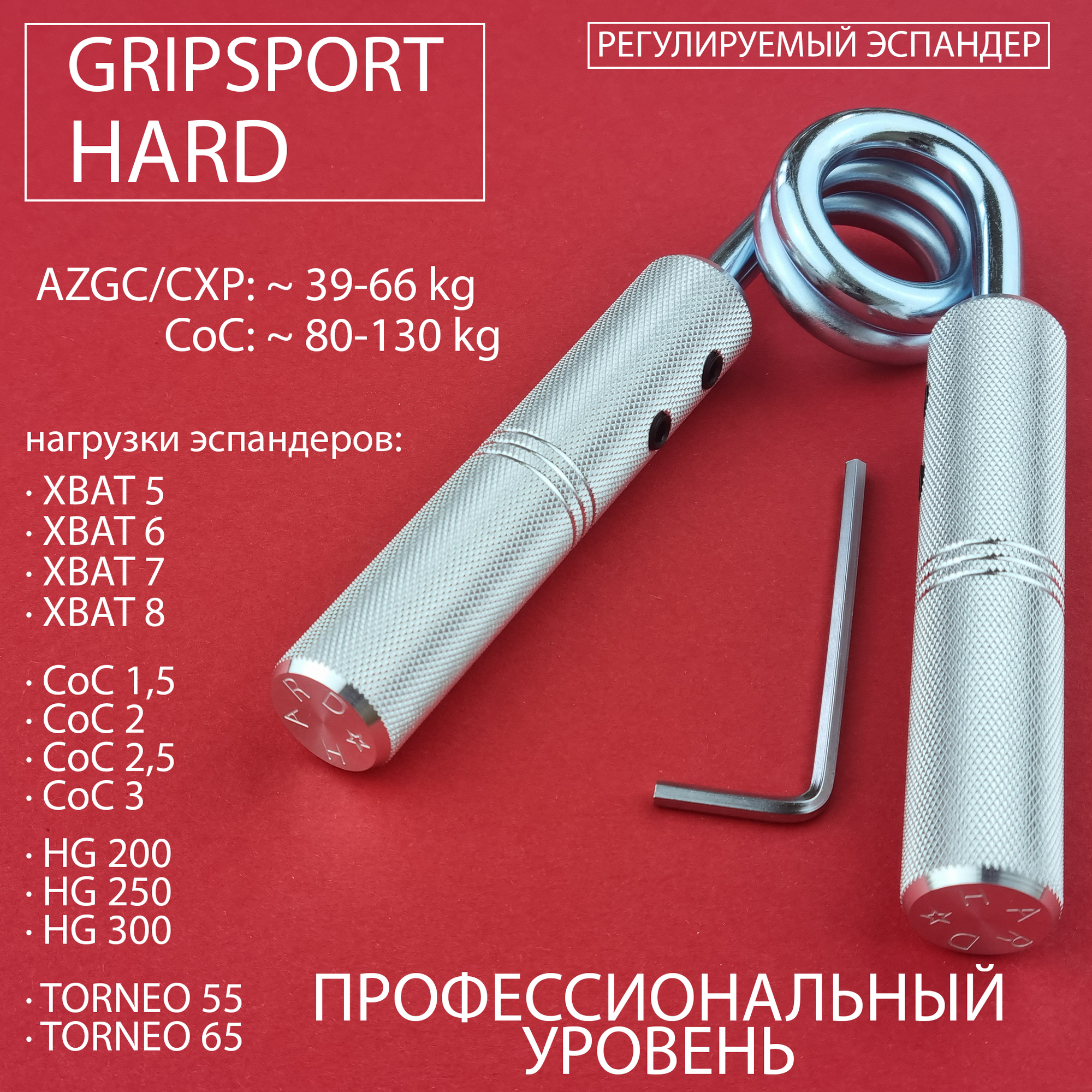 Эспандер кистевой регулируемый MEDIUM HARD PRO+CHOKER. Средний уровень.