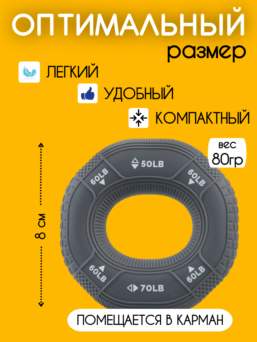 Кистевой эспандер круглый силиконовый, 3 уровня нагрузки, эспандер для рук кольцо, 8 см, серый интересное: