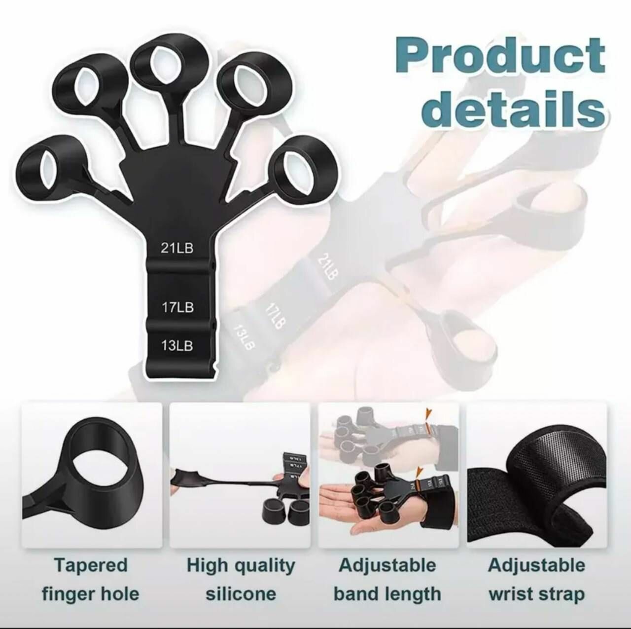 Эспандер для пальцев рук кистевой 9,5 кг, с креплением на запястье интересное:
