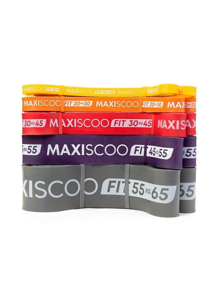 Фитнес эспандеры MAXISCOO FIT, 5 шт (10-20 кг, 20-30 кг, 30-45 кг, 45-55 кг, 55-65 кг)