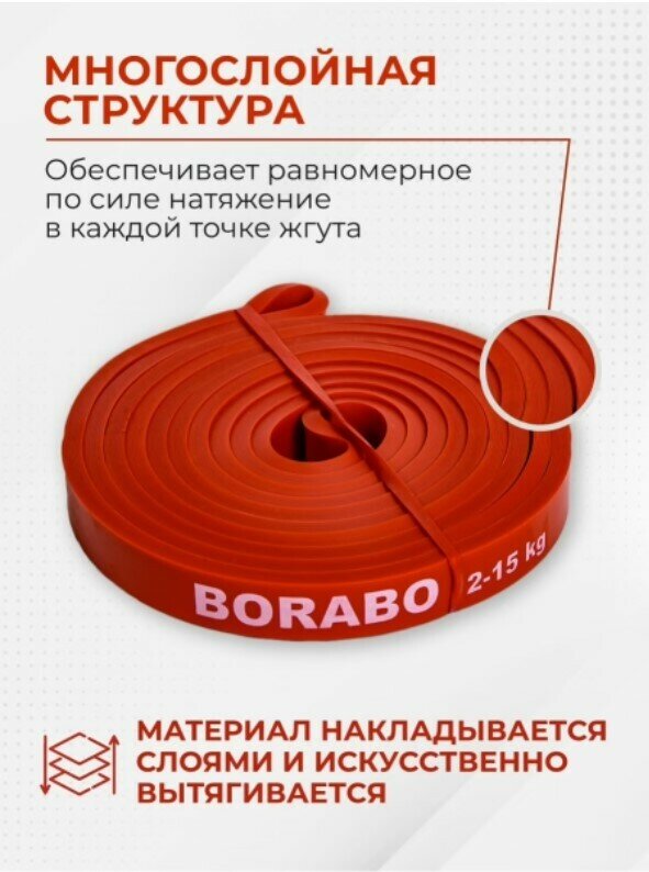 Резинка для тренировок BORABO, эспандер ленточный красный, 2-15 кг интересное:
