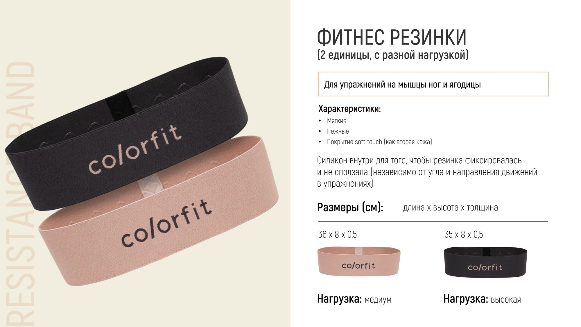Резинки для фитнеса Colorfit набор из двух резинок разной нагрузки интересное: