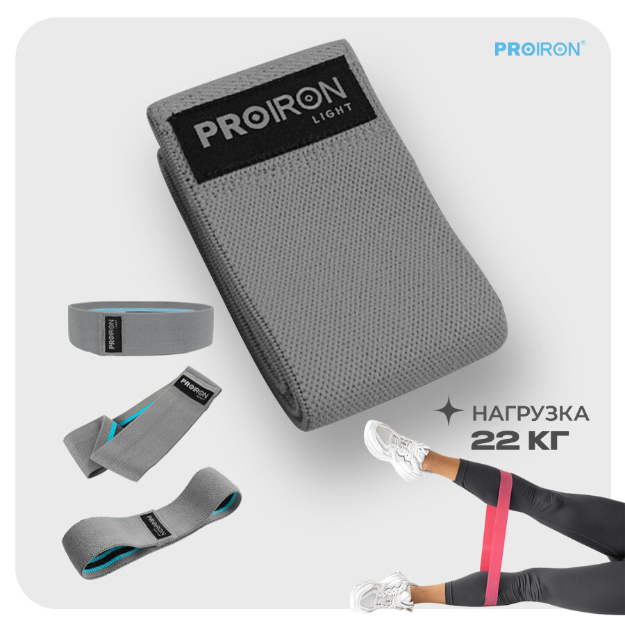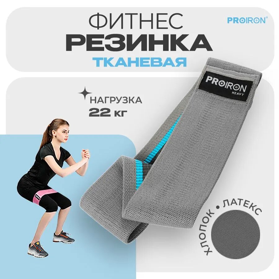 Резинка для фитнеса, PROIRON, ленточная, тканевая, 76х8 см, 18-22 кг, серая интересное: