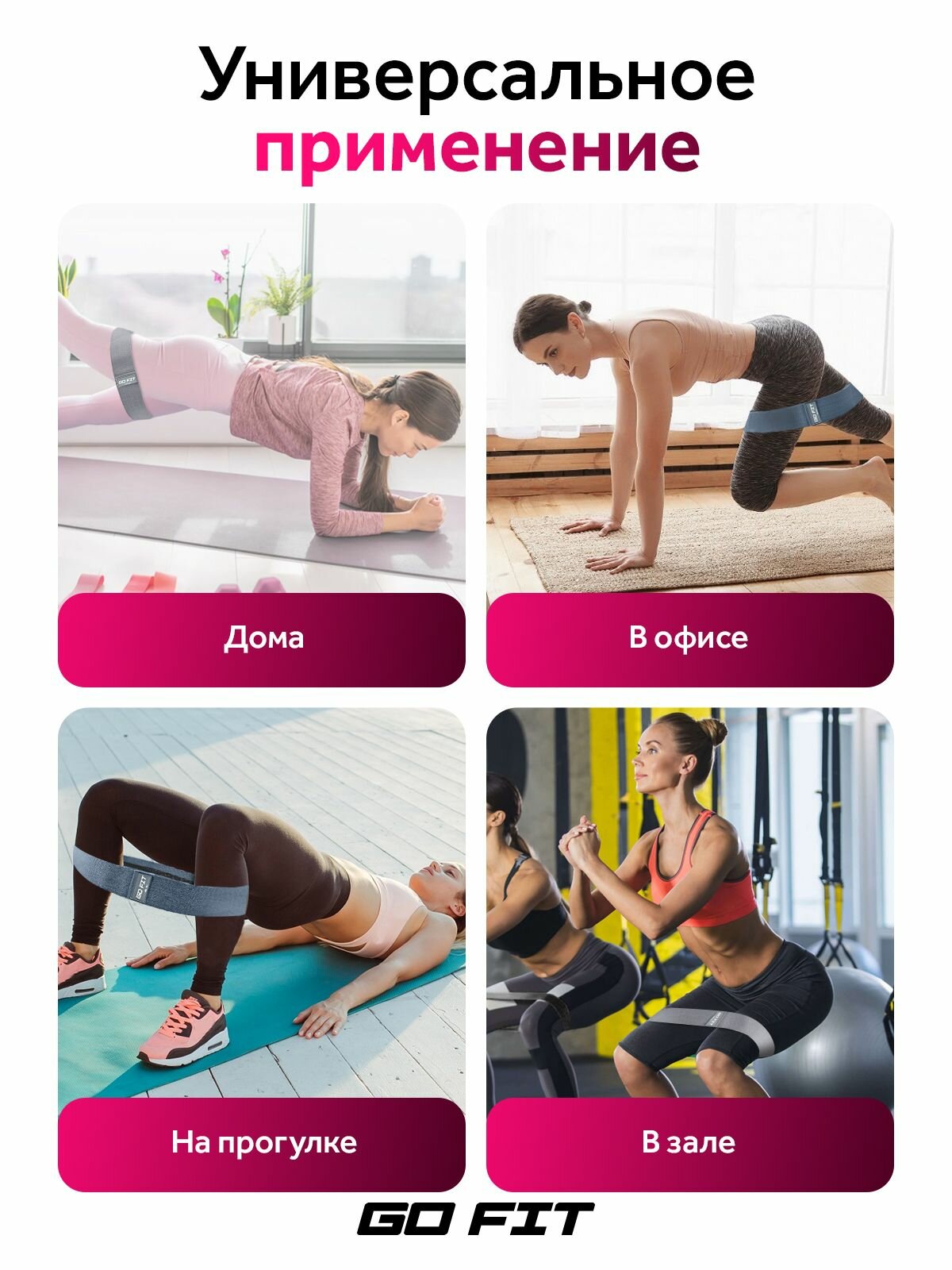 Тканевые фитнес-резинки GO FIT Premium, для йоги, пилатеса, фитнеса, мешочек и программа тренировок, набор 3 шт, Grey интересное: