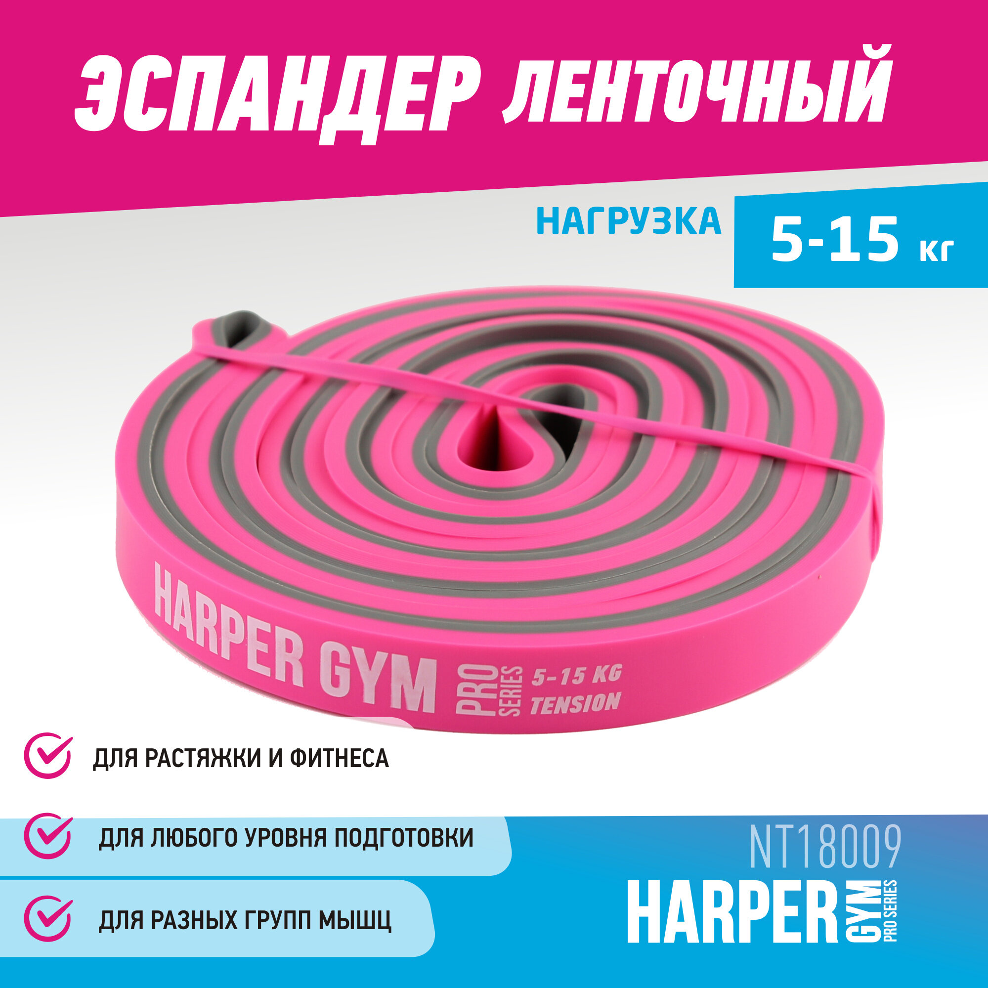 Эспандер для фитнеса замкнутый Harper Gym Pro Series NT18009 208х1,3х0,45 см (нагрузка 5-15 кг) интересное: