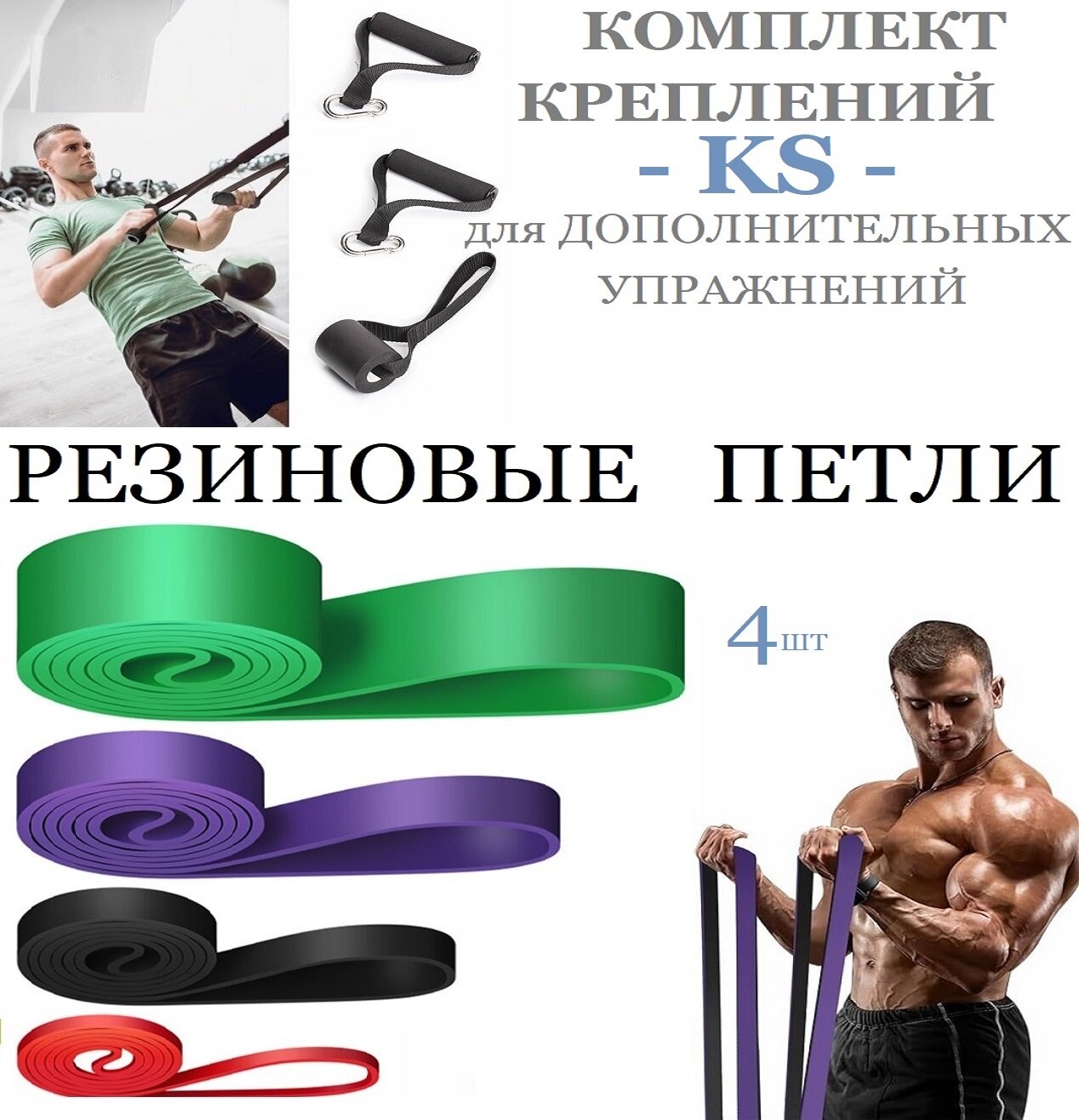 Резиновые петли 4шт + Комплект креплений KS для дополнительных силовых упражнений интересное: