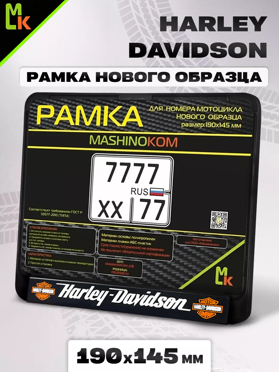 Купить Рамка MkAuto для номера мотоцикла " Harley-Davidson" Размер: 190*145мм