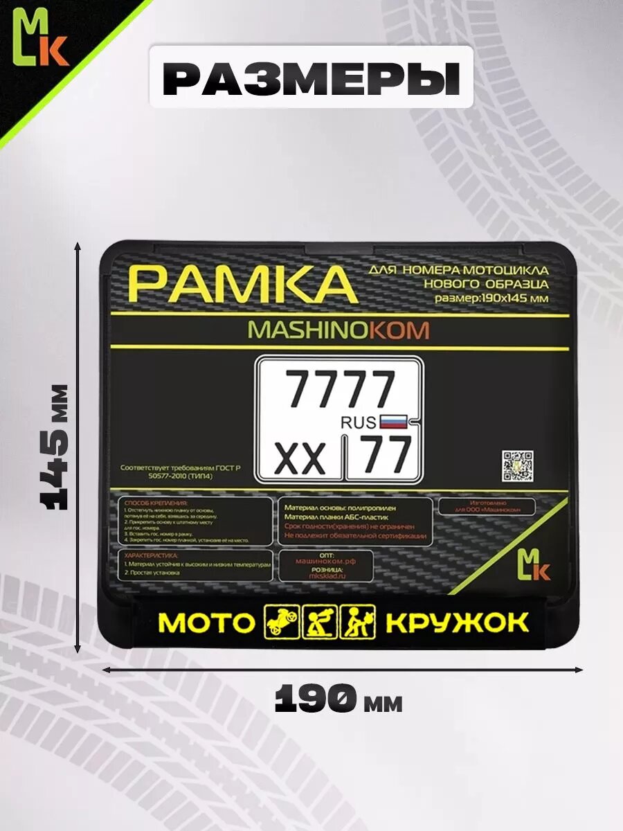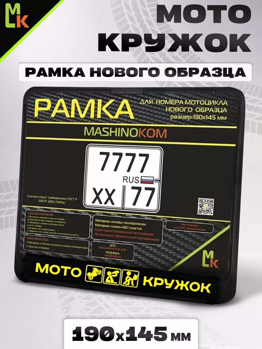 СохранитьРамка MkAuto для номера мотоцикла "Мотокружок" Размер: 190*145мм интересное: