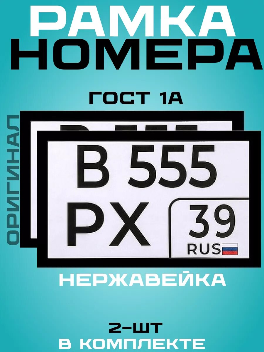 Рамка для номера квадратная черная ГОСТ 2шт в комплекте, нержавеющая сталь интересное: