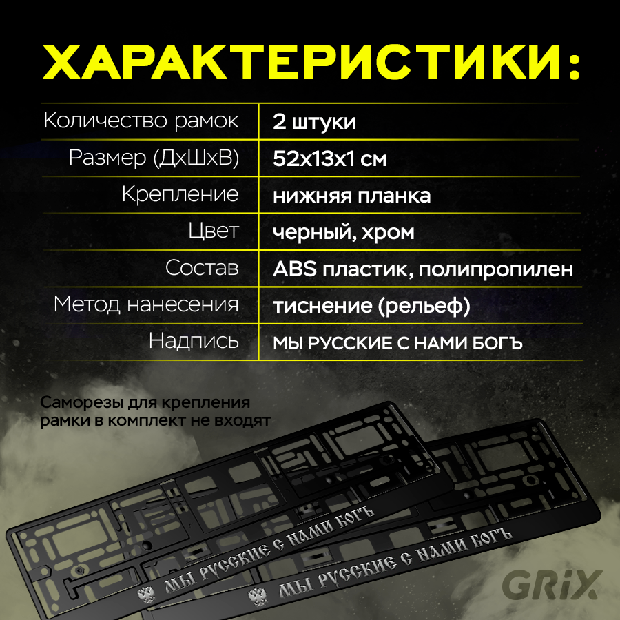 Купить Grix Рамки автомобильные для госномеров с надписью "МЫ русские С нами богъ" Набор - 2 шт.