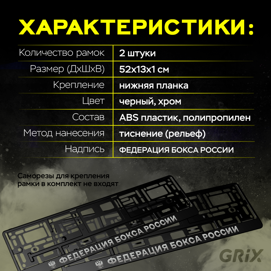 СохранитьGrix Рамки автомобильные для госномеров с надписью "федерация бокса россии" Набор - 2 шт. интересное: