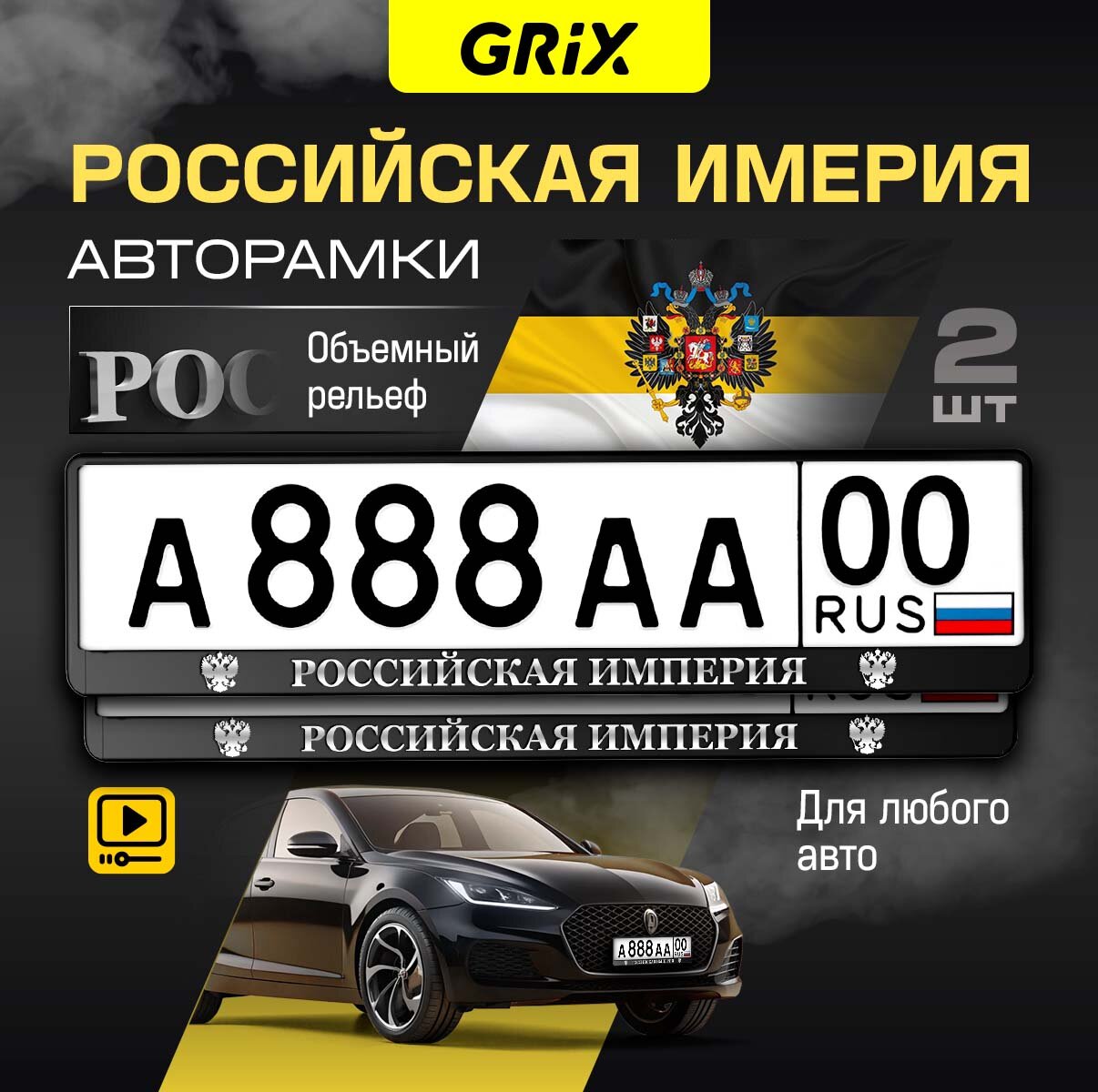 СохранитьGrix Рамки автомобильные для госномеров с надписью "российская империя" Набор - 2 шт. интересное: