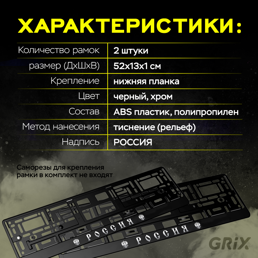 Купить Grix Рамки автомобильные для госномеров с надписью "россия" Набор - 2 шт.