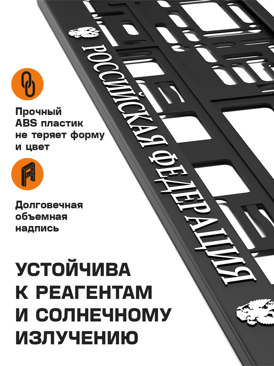 Grix Рамки автомобильные для госномеров с надписью "россия" Набор - 2 шт.