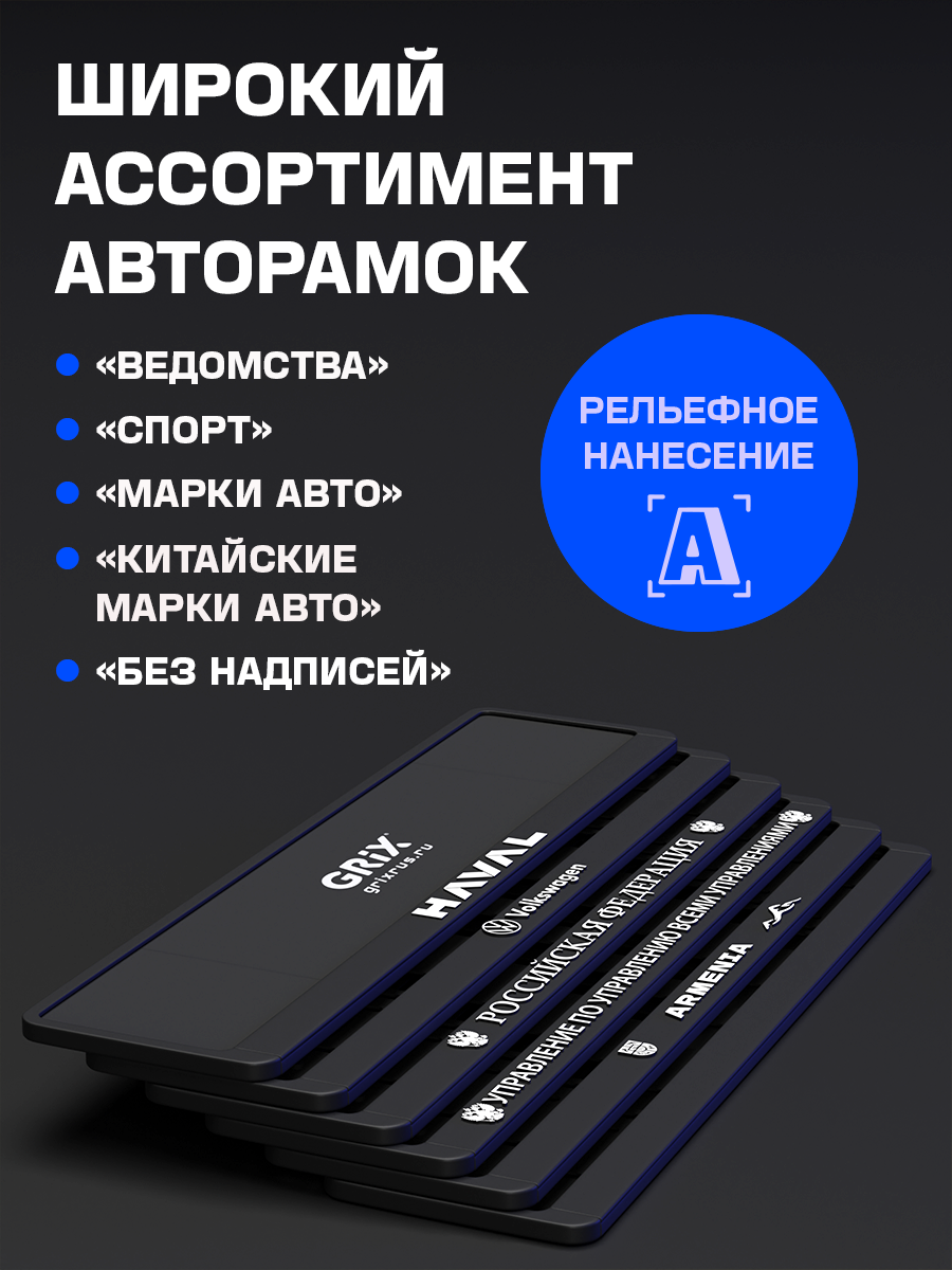 Grix Рамки автомобильные для госномеров "россия" 1 шт.