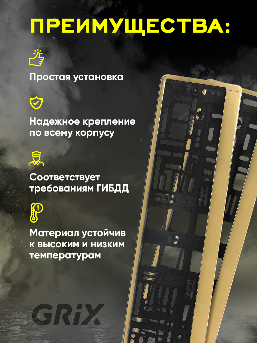 Купить Grix Рамки автомобильные для госномеров ЗОЛОТО комплект 2 шт.