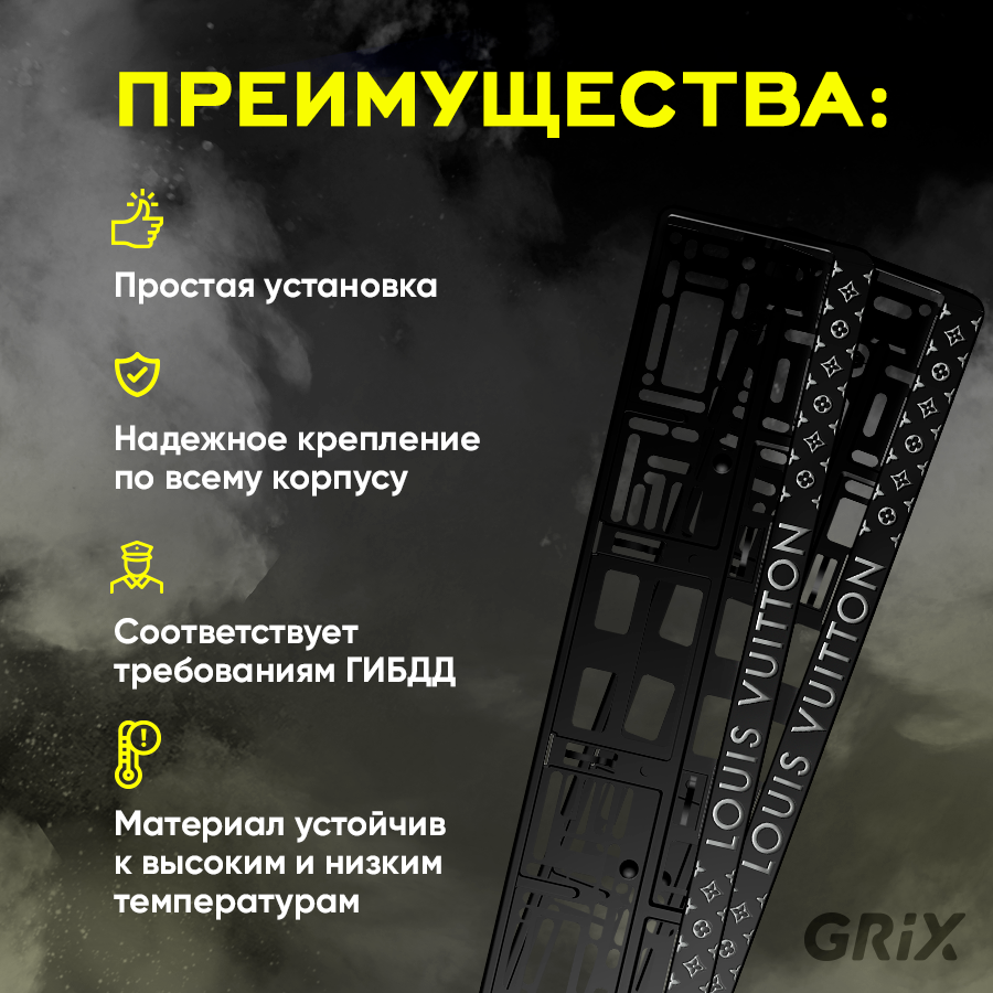 Купить Grix Рамки автомобильные для госномеров с надписью "LOUIS VUITTON" Набор - 2 шт.