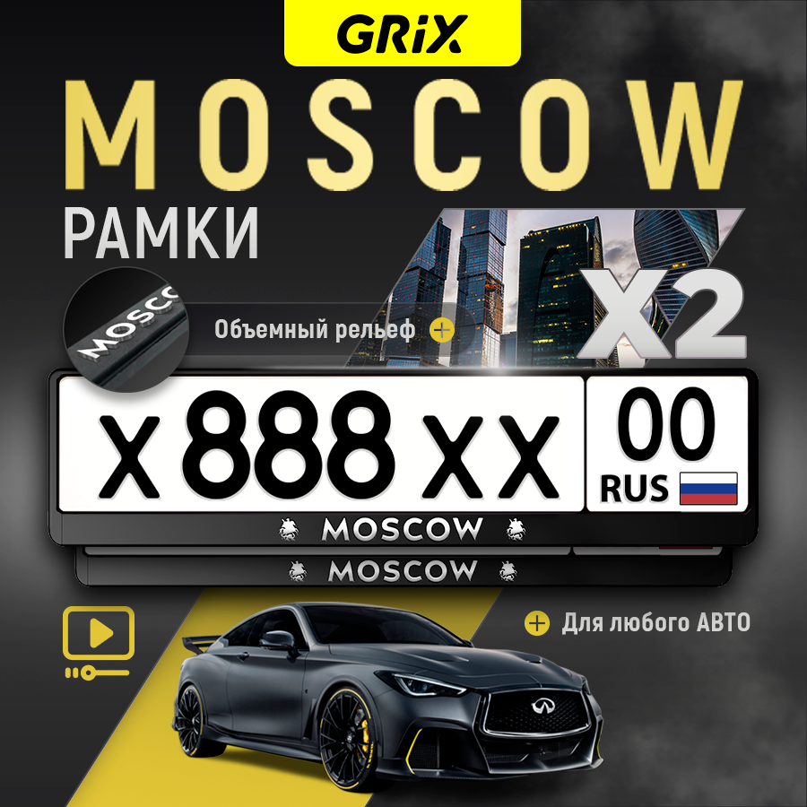Купить Grix Рамки автомобильные для госномеров с надписью "MOSCOW" Набор - 2 шт.